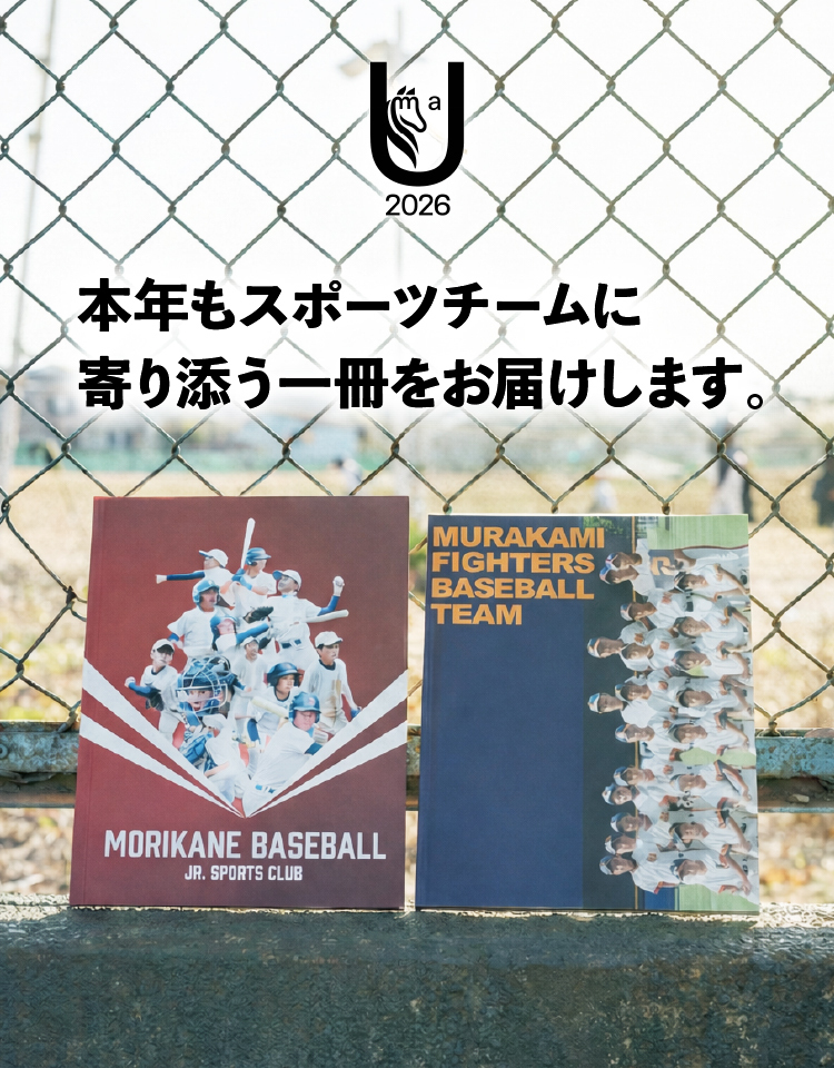 180度パタンと開く製本方法を採用し、見開きの写真もつなぎ目がなく、美しく仕上がります。ページにしっかりとした厚みがあり、選手の成長記録としてもご活用いただけます。
