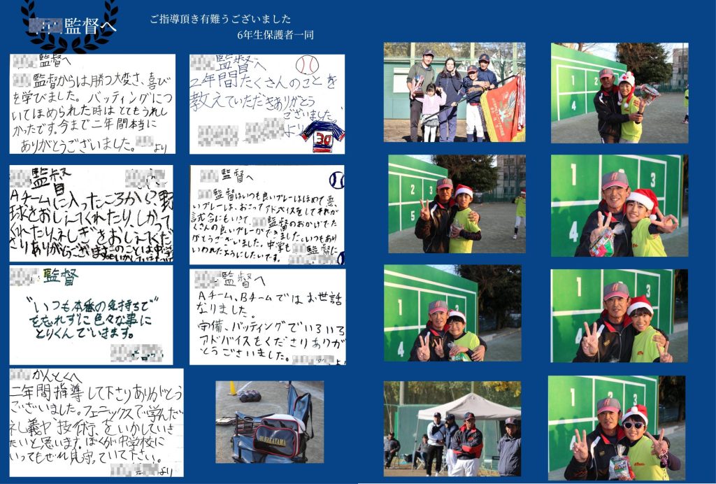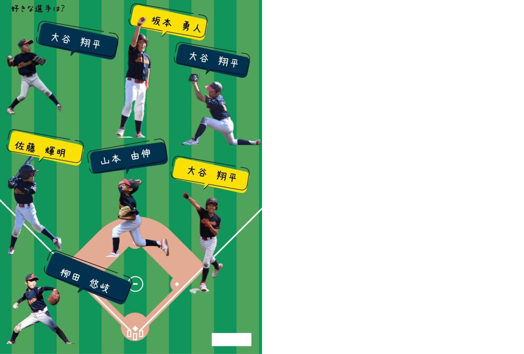 監督へのメッセージは選手たちの手書きをスキャンし、画像として貼り付けられていたり、最後のページにはお客様が別のソフトを使用し切り抜いた選手たちの写真を使って憧れの選手名を掲載されています。何年後かに彼らが見返した時、憧れの選手に近づけたか楽しみですね🎶
