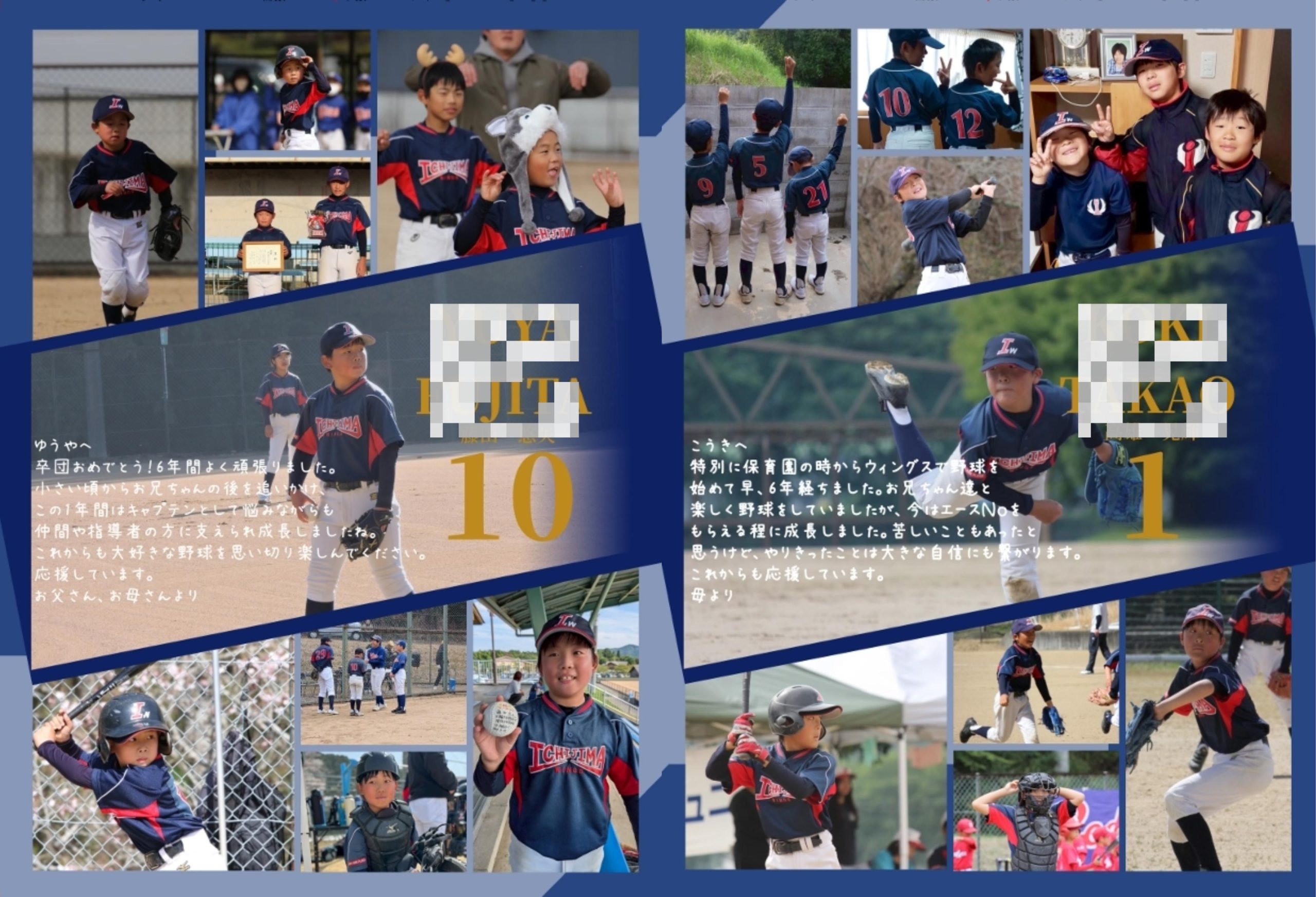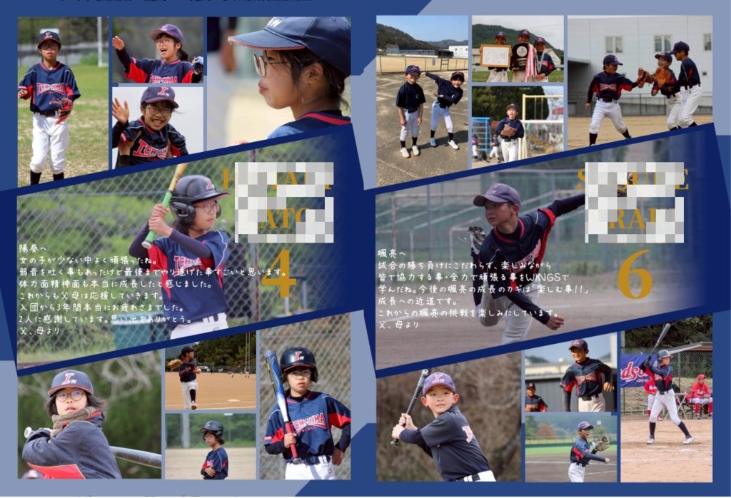 個性豊かな一人ひとりのプロフィールや、指導者の方々から贈られた言葉には、このチームで過ごした数年間の重みが詰まっています。背伸びをしない、ありのままの「ウイングス」の歩みを一冊にまとめた、いつまでも身近に置いておきたくなるような大切な記録です。