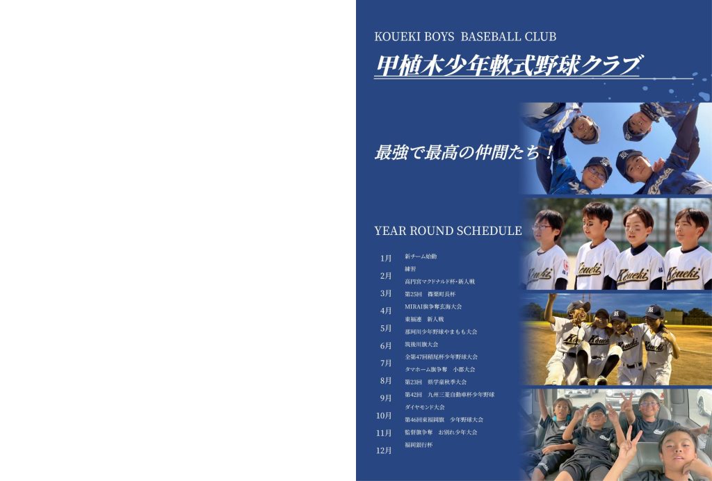 「甲植木少年軟式野球クラブ 第48期」の卒団を祝し、最強で最高の仲間たちと駆け抜けた熱い日々を一冊のアルバムに凝縮しました。
