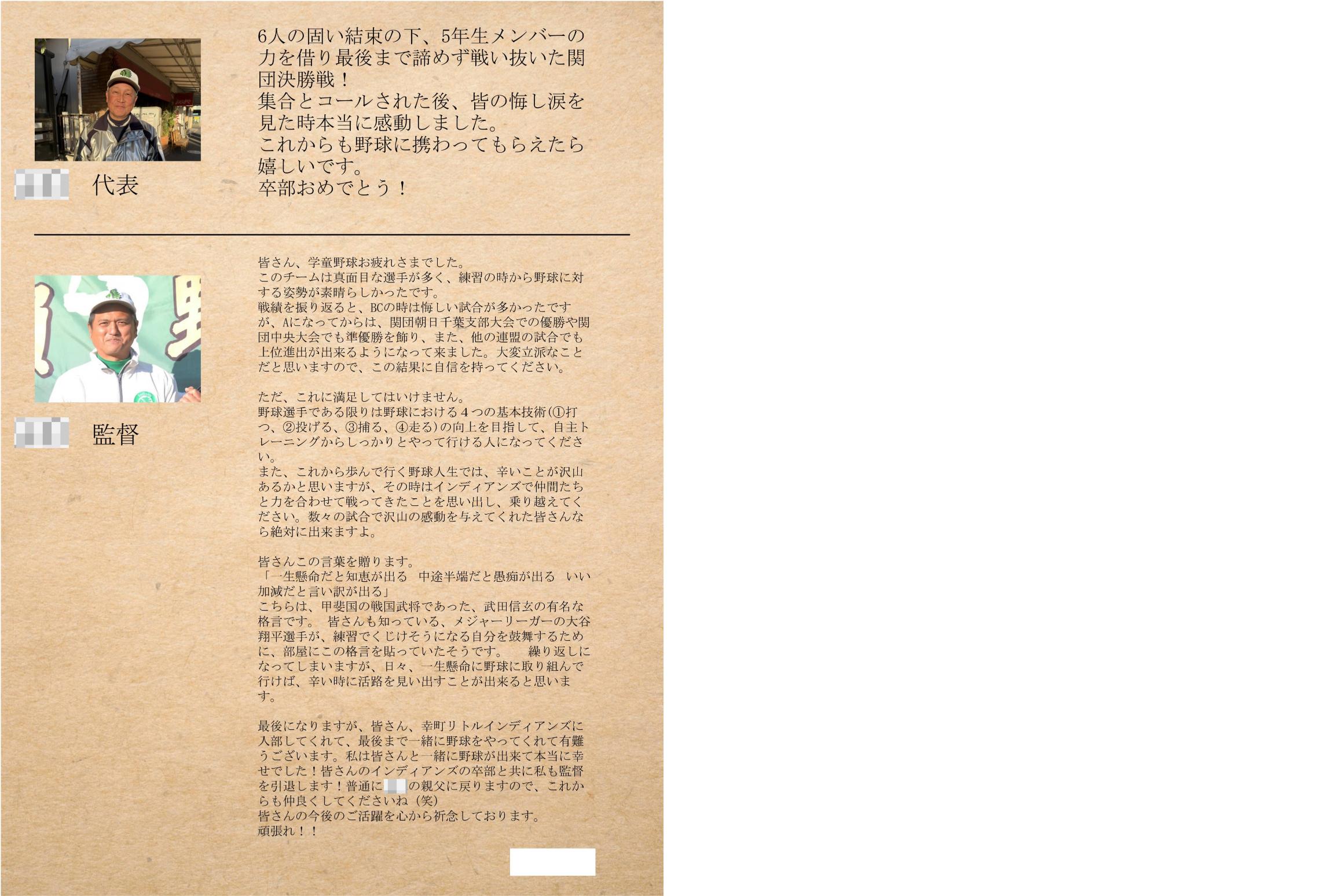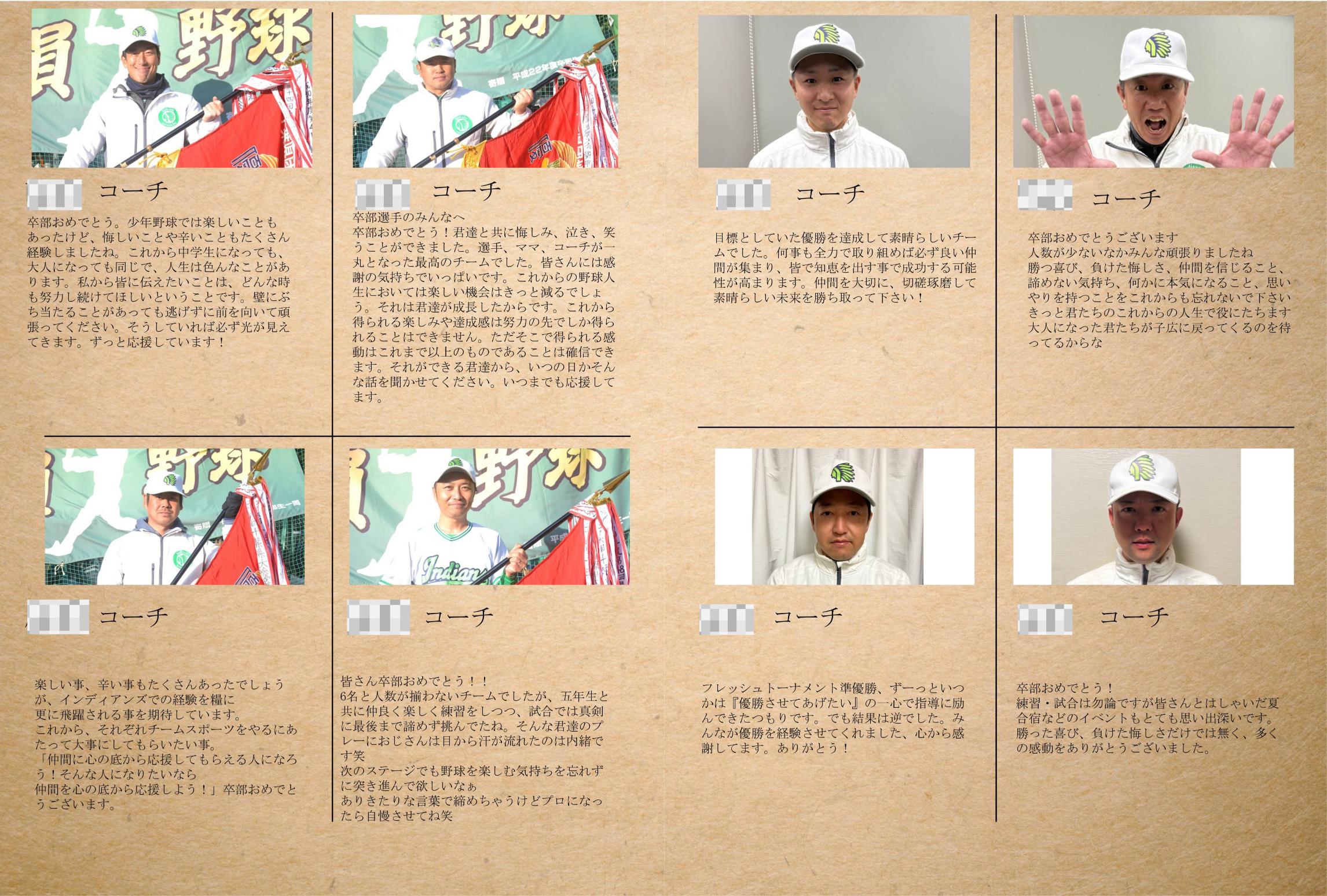 最後のページでは監督やコーチからのメッセージを3Pにわたり掲載されています。長い間選手たちを見守ってきた関係者の方々の気持ちを、こうした形で残すのも素敵です。