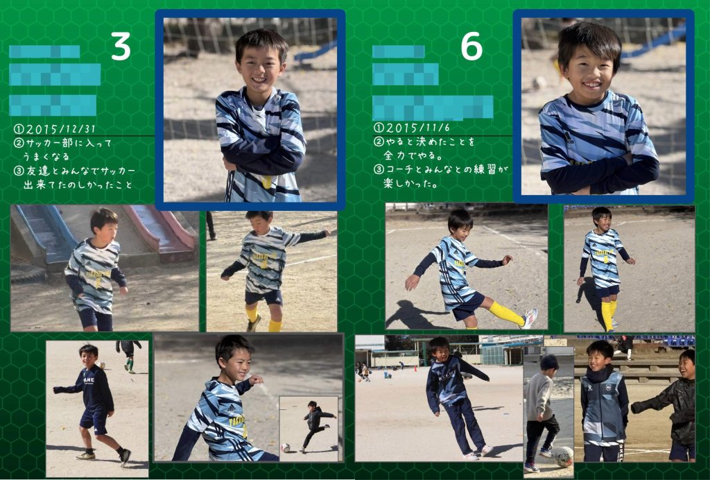 コーチからのメッセージ、そして保護者様から卒団生への応援の言葉で締められているので、この先の未来、もしもサッカーで行き詰まったりしたときはこのアルバムを開いて、「楽しかった」や「うれしかった」を振り返ってもらいたくなるような素敵な気持ちがこもった1冊です。